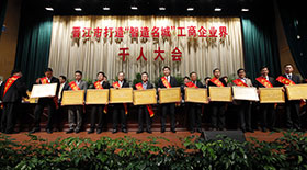 【本報訊】為兌現落實晉江市經濟發展鼓勵扶持政策,支持引導企業做大做優做強,推動民營企業“二次創業”,打造晉江“智造名城”名片。3月25日,晉江市打造“智造名城”工商企業界千人大會在晉江市委黨校舉行,大會表彰了數十家2012年度納稅超千萬元企業以及在產業創新、對外貿易、科技創新、品牌建設等領域做出突出成績的先進企業。我司以納稅超億元,產業、科技技術上的眾多創新成果榮獲晉江市2012年度經濟發展先進企業,施能坑董事長、張田副總裁出席表彰大會。