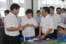 【本報訊】2013年7月16日,泉州市市委書記黃少萍一行在晉江市市委書記陳榮法等領導的陪同下,蒞臨我司開展生產經營情況調研工作。施能坑董事長率匯報小組接待考察團,陪同參觀了精密制造部、“全國工人先鋒號”方維燦車間和展廳。參觀結束后,在二樓大會議室召開品牌成果及生產經營情況匯報會。