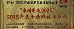 潯興股份榮膺“‘泉州制造2025’ 2015年度十佳科技小巨人”